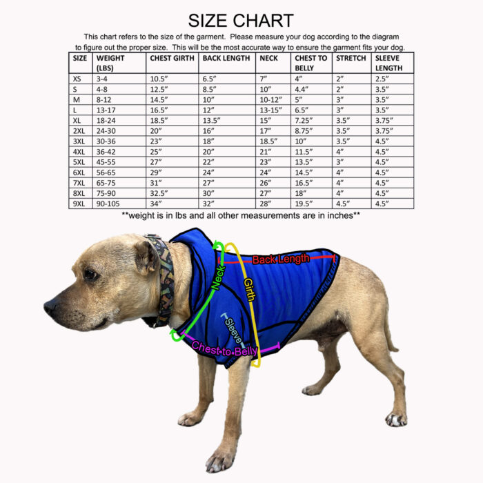 • Sizing for sweatshirts DOES NOT correspond to dog collar sizing.