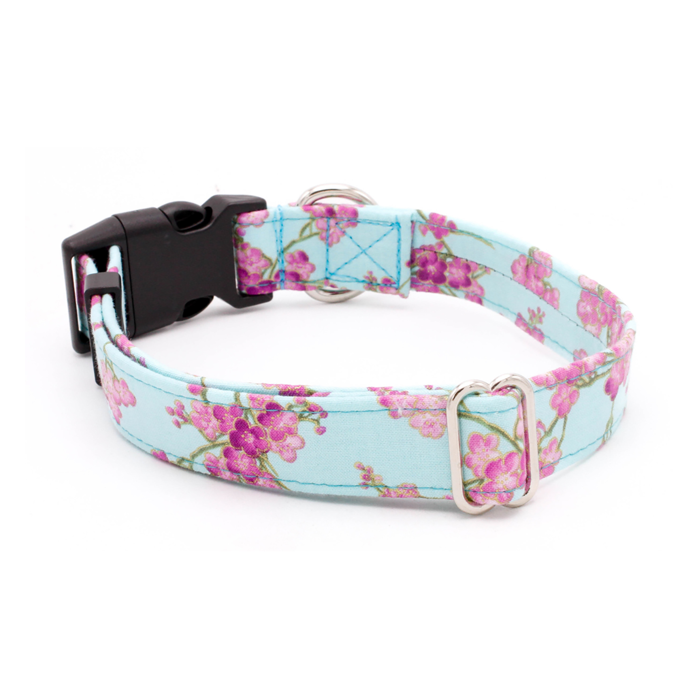 Add a touch of elegance to your dog’s style with the Cherry Blossoms Collar. Delicate cherry blossom designs on a pale turquoise background create a charming, standout look that’s perfect for walks, outings, or any time your pup wants to shine.
