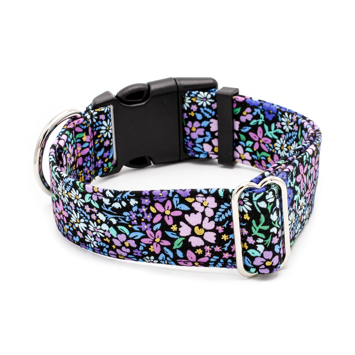Brighten up your pup’s look with our Black Pastel Floral Dog Collar, sprinkled with tiny multicolor flowers that pop against a classic black background. This playful floral dog collar adds just the right touch of color and charm, making it perfect for spring strolls, park playdates, or everyday adventures. A cheerful accessory for dogs who love to show off their style.