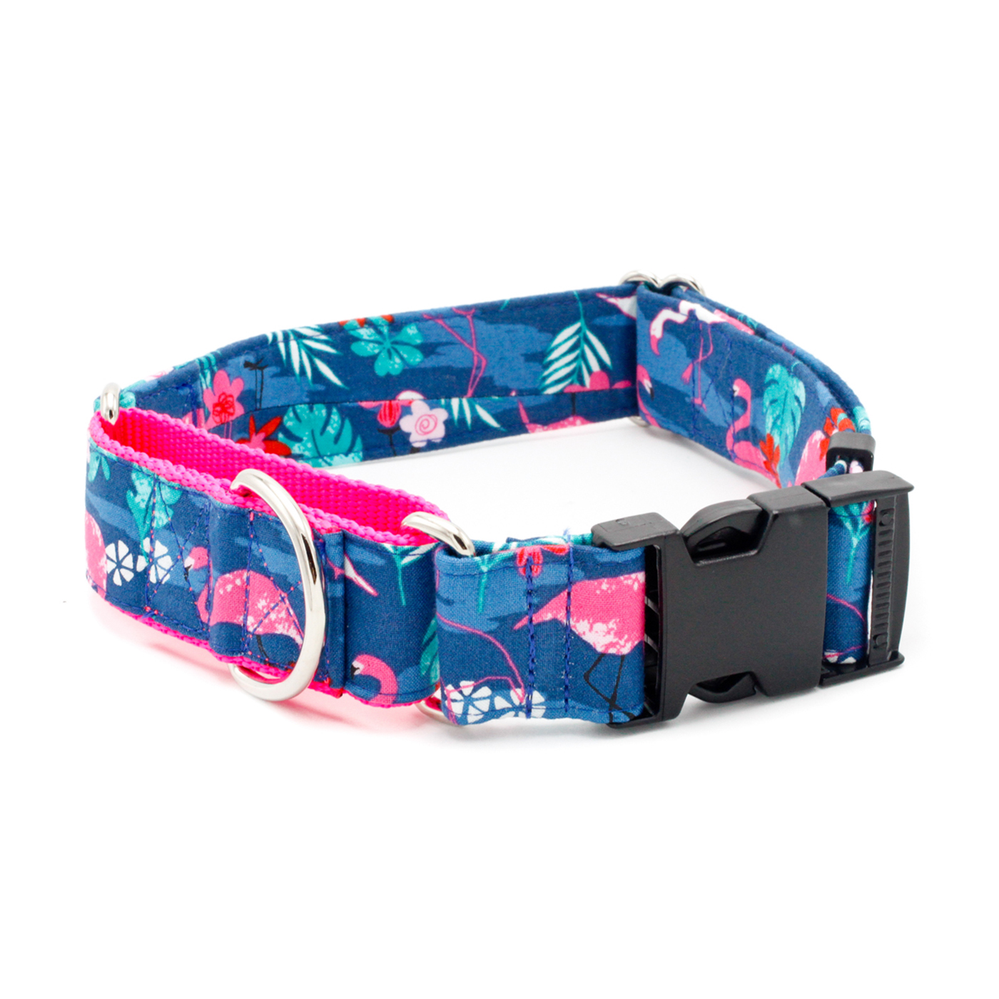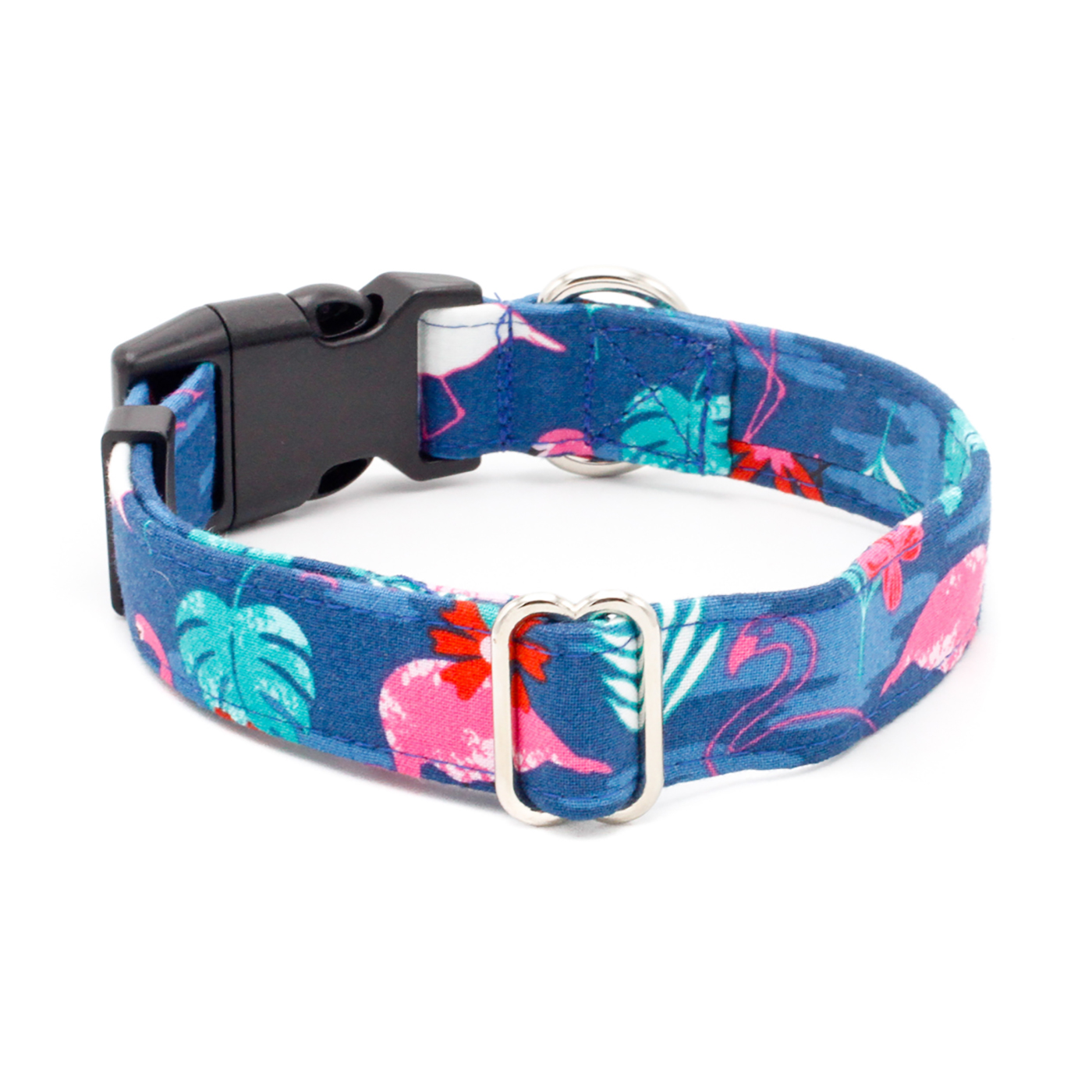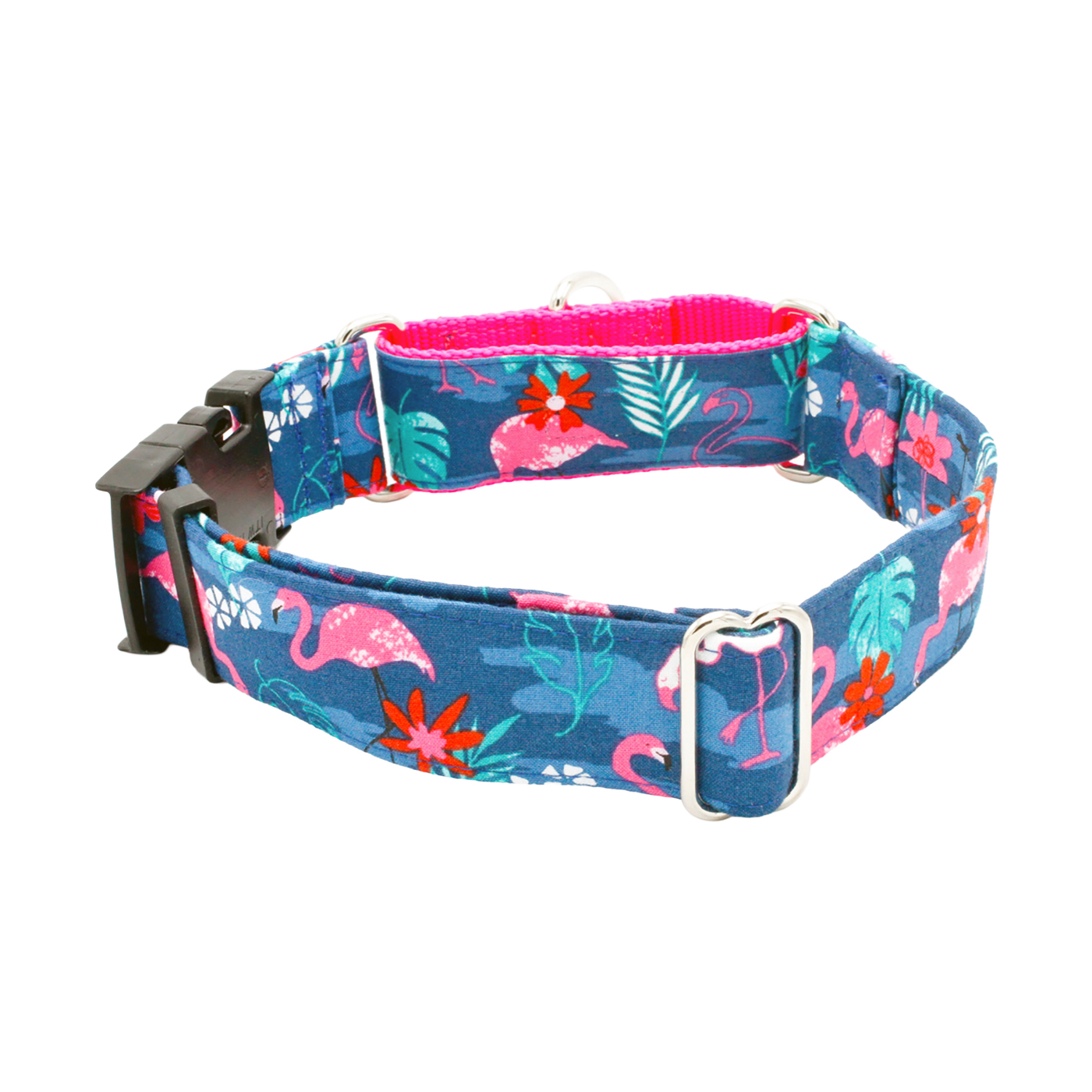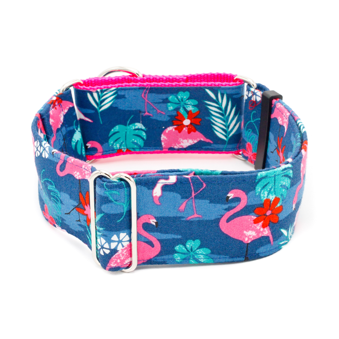Let your dog channel Miami Vice vibes with this vibrant collar. Featuring playful pink flamingos on a tropical blue background, it’s perfect for pups who want to bring a touch of 80s cool and sunny Miami style to every walk. A fun, standout accessory for dogs with personality.