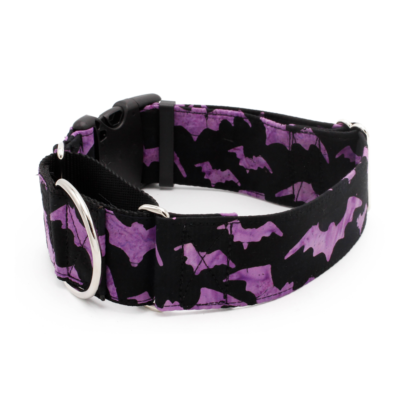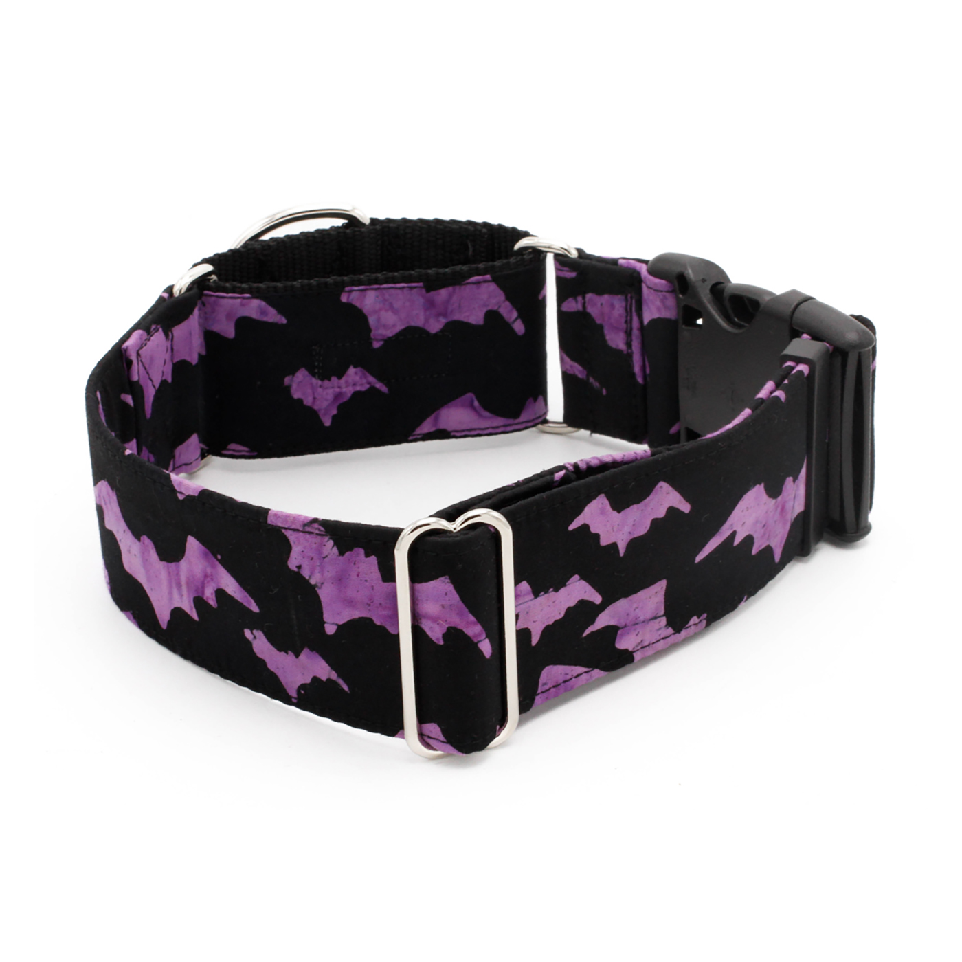 Add a touch of spooky style to your pup’s look with our Purple Bats Dog Collar, featuring a striking gray tie-dye bat pattern on a sleek black background. Perfect for Halloween walks or year-round gothic flair, this bold design is a must-have for dogs who like to stand out with a little dark charm.
