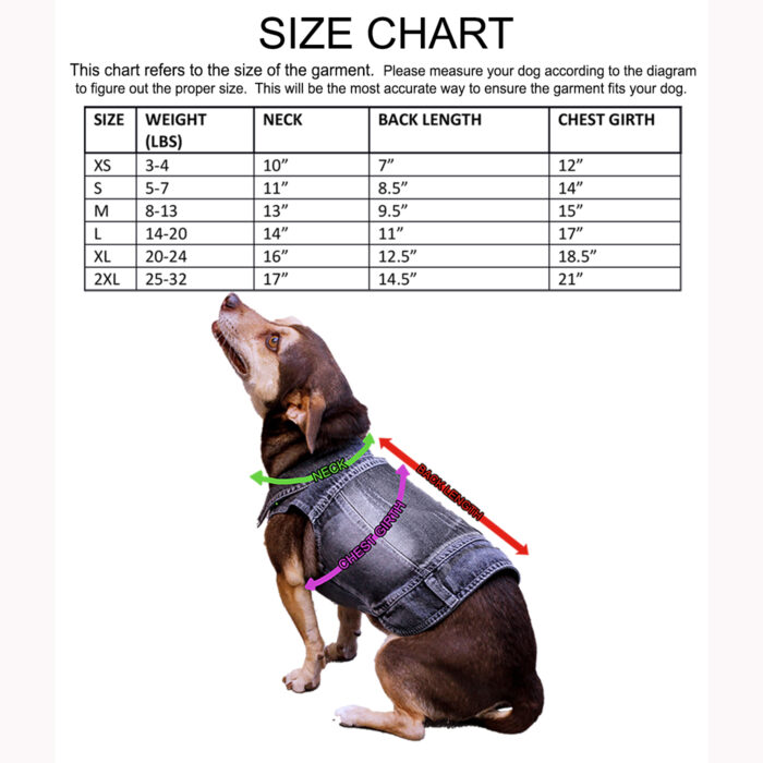 Sizing for denim vests DOES NOT correspond to dog collar sizing.