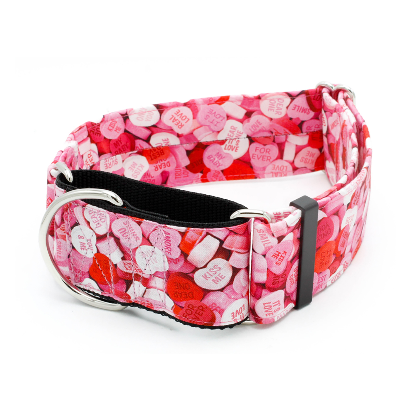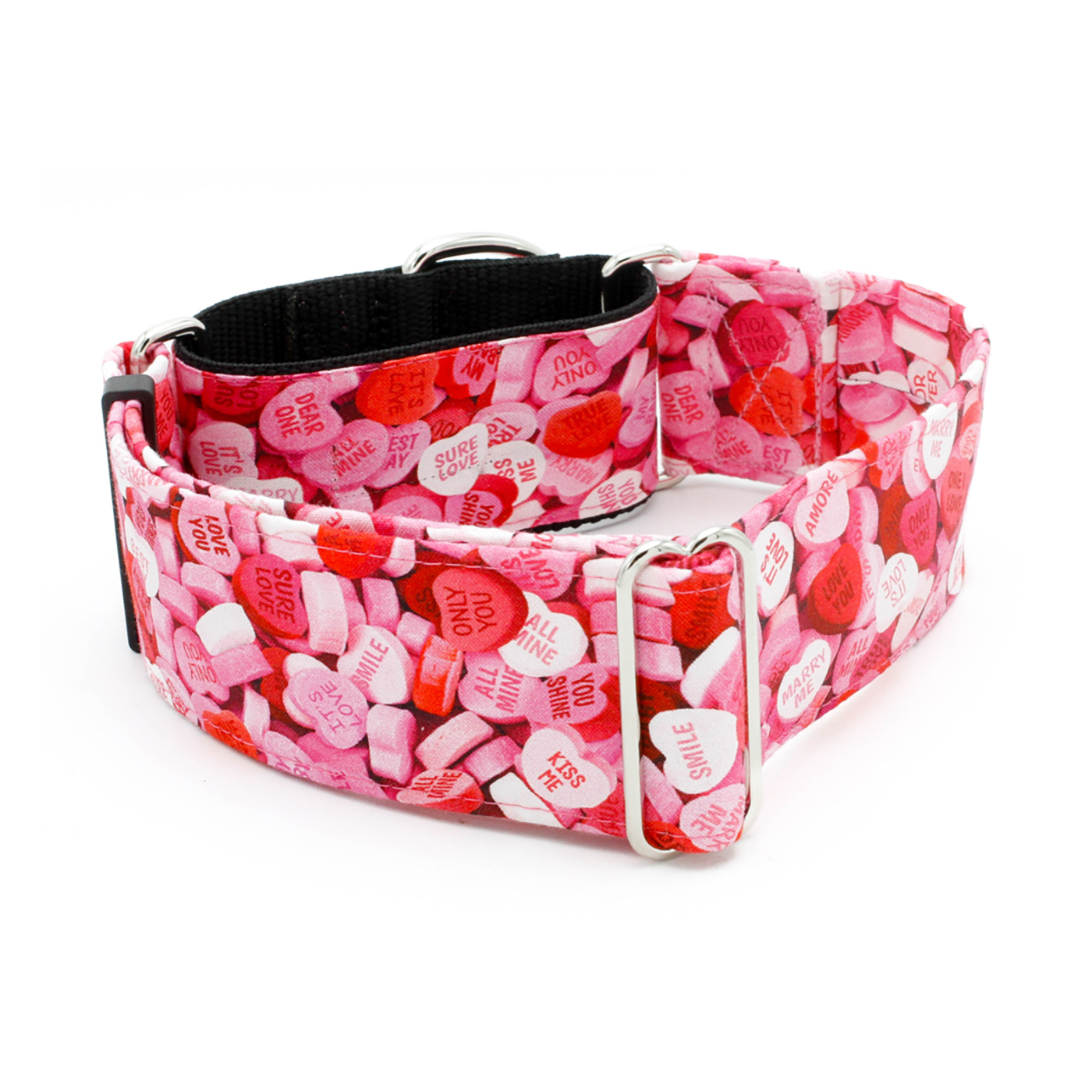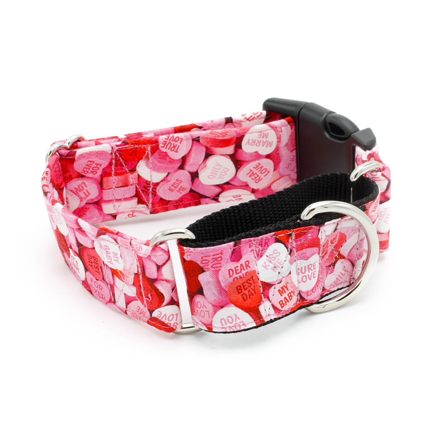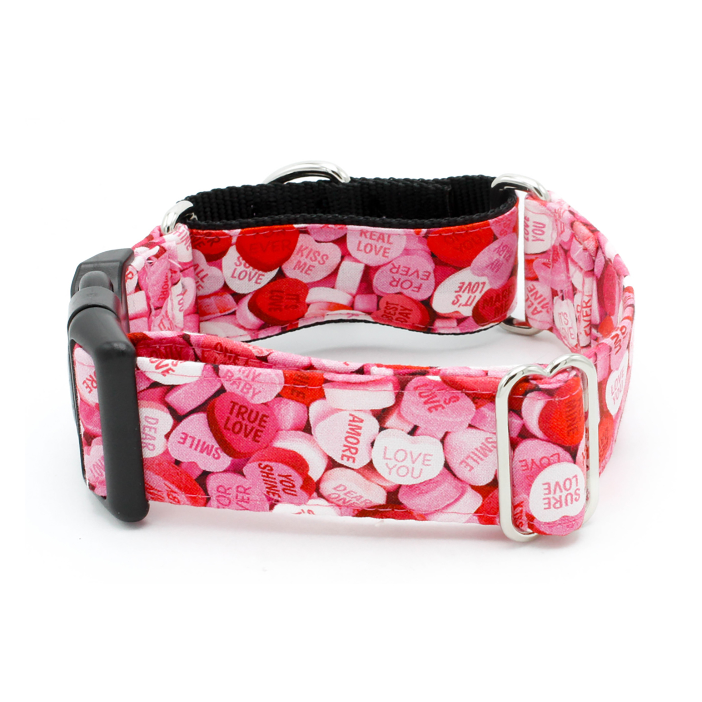 Celebrate love in the sweetest way with our Sweet Hearts Collar. Adorned with colorful candy sweetheart designs, each heart features playful messages bringing a nostalgic Valentine’s charm to your pup’s look. Perfect for Valentine’s Day walks, photo ops, or simply showing off your dog’s lovable personality, this festive dog collar is sure to make hearts melt wherever you go.