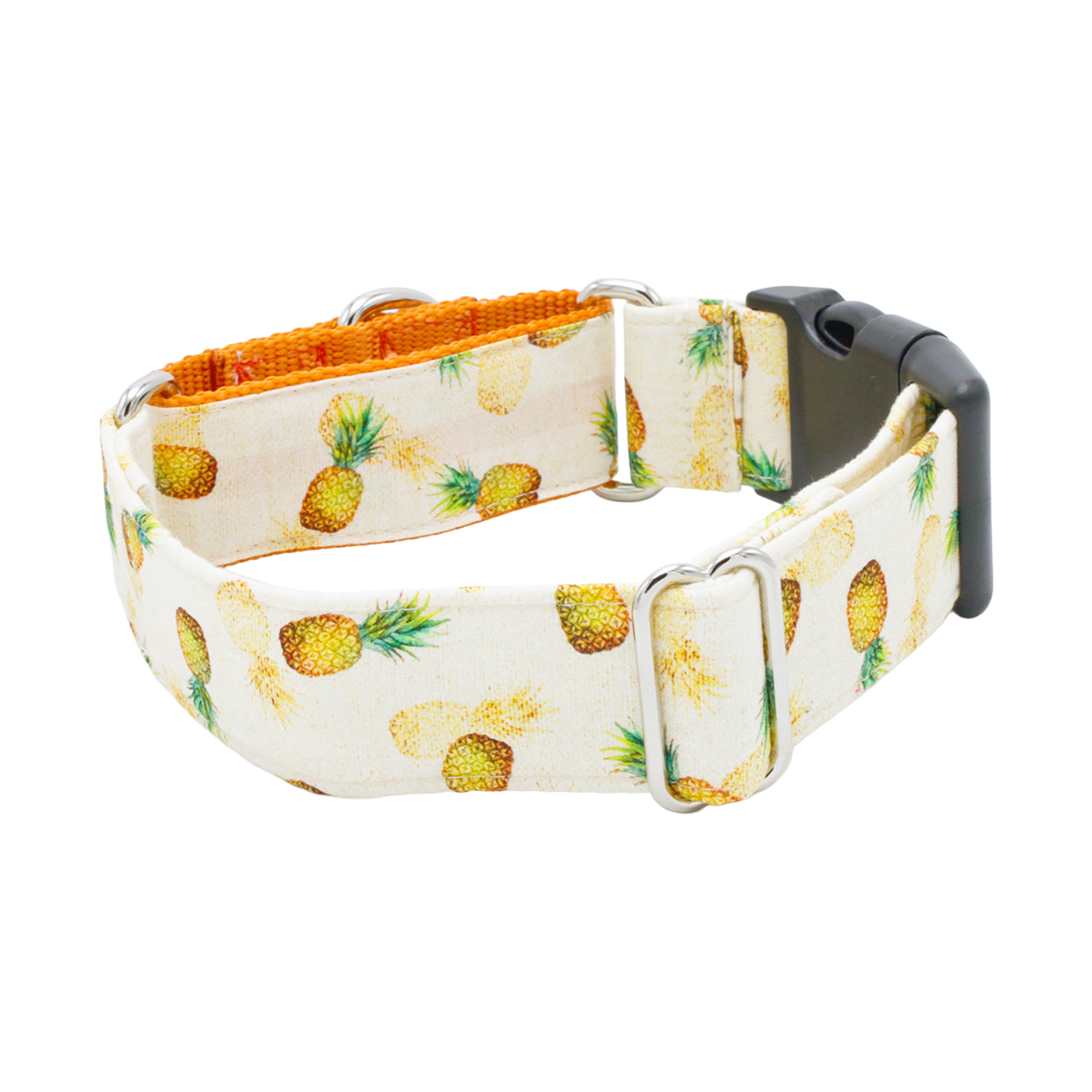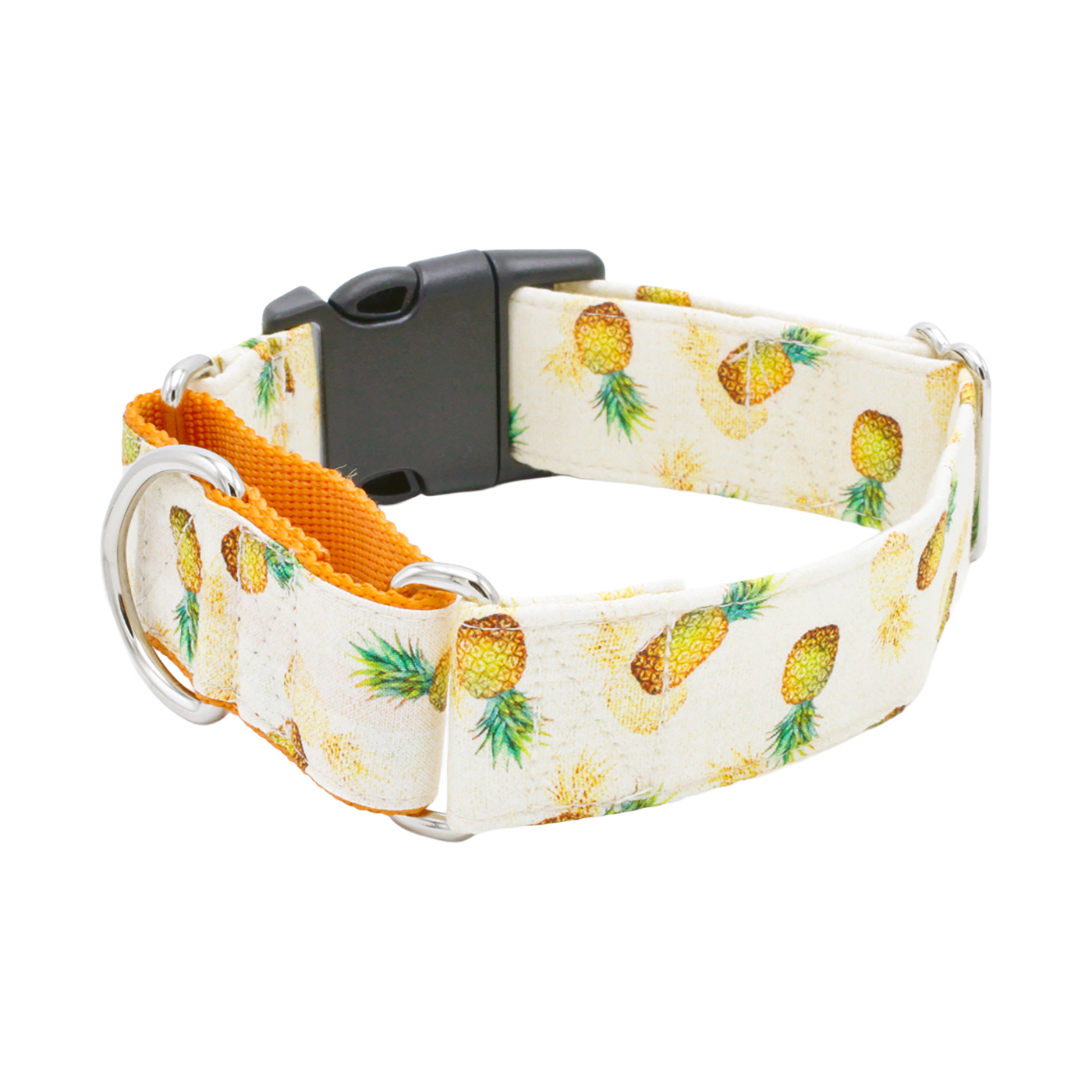 Forget the bad pineapple jokes—this Pineapple Dog Collar is the real way to get people smiling! Covered in bright, tropical pineapples, this collar instantly turns your pup into the life of the party (or at least the dog park). Perfect for summer walks, beach days, or anytime your dog wants to show off their fruity side, this tropical dog collar is a sweet way to add some fun to their wardrobe. Warning: may cause sudden cravings for piña coladas.